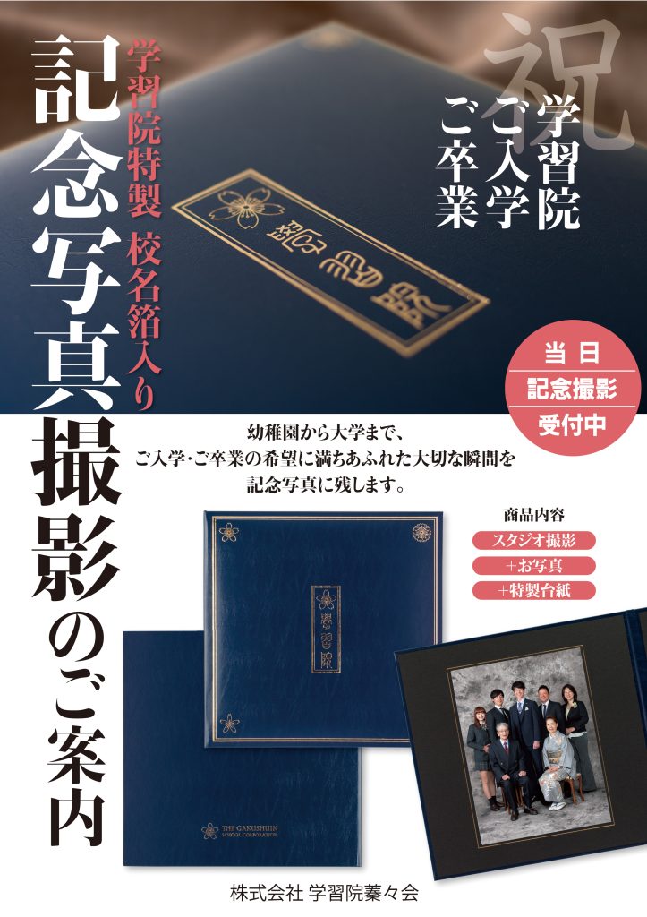 式典当日同様に『学習院校名入り特製アルバム台紙』でのお渡しが可能です。